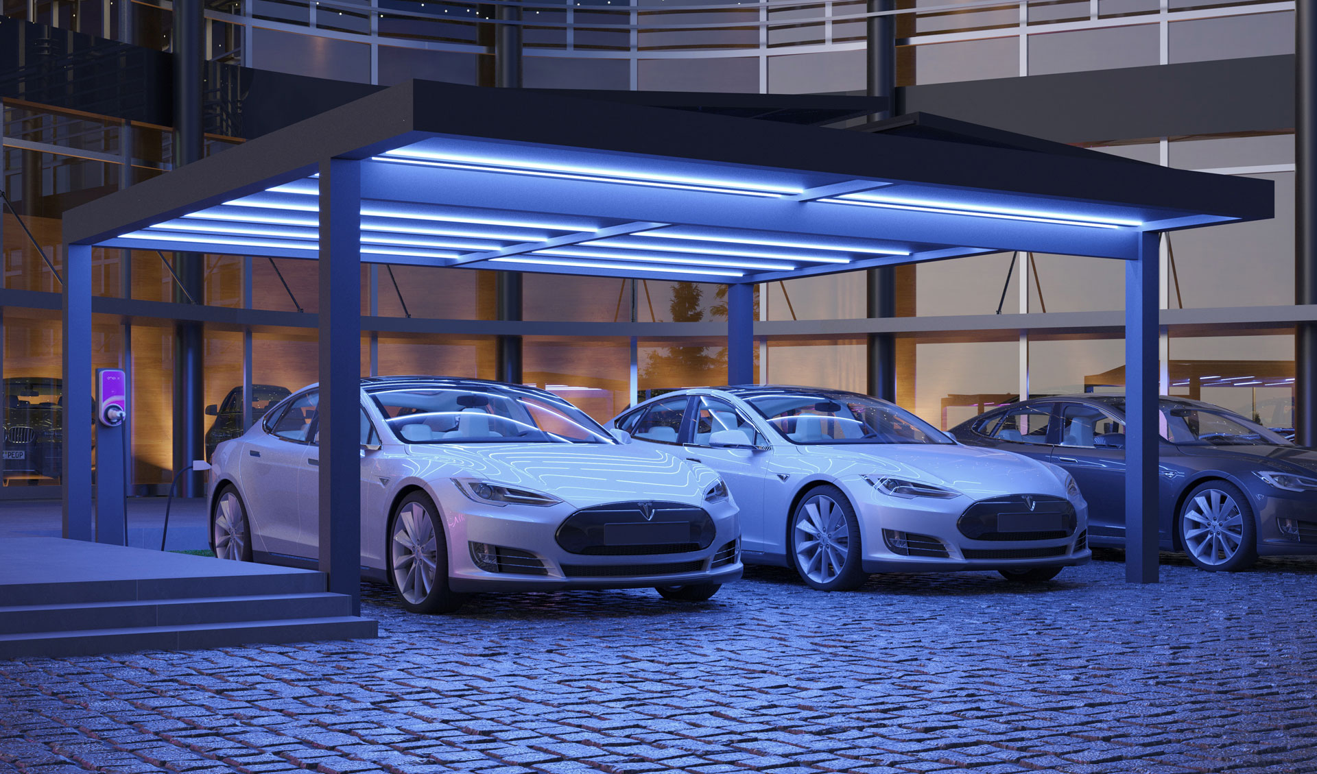 Flachdachcarports mit Photovoltaik